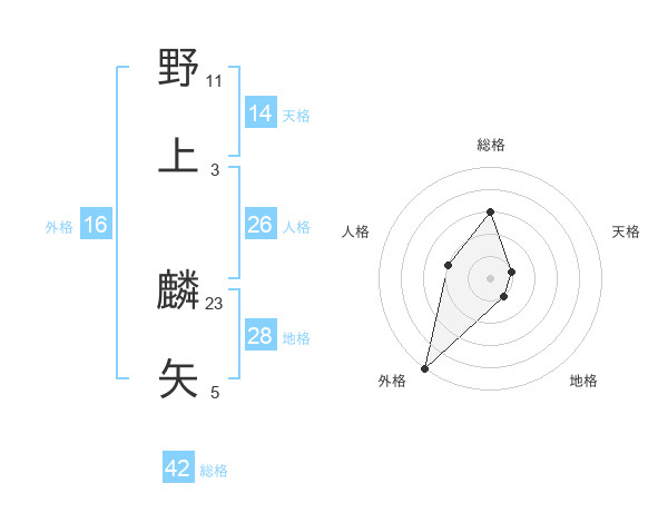 野上 麟矢さんを姓名の画数から五運を鑑定