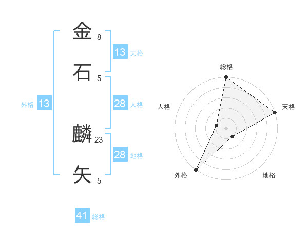 金石 麟矢さんの天格は13画の5点!