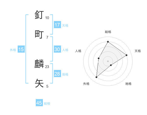 釘町 麟矢さんの総格は45画の4点!