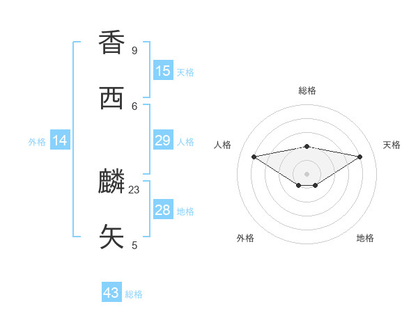 香西 麟矢さんを姓名の画数から五運を鑑定