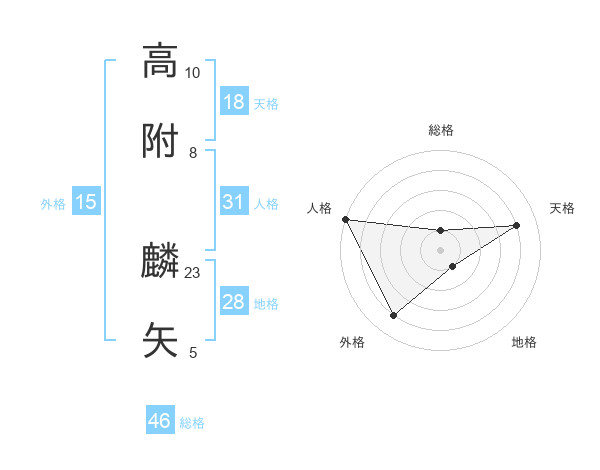高附 麟矢さんの総格は46画の1点!