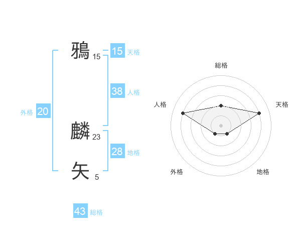 鴉 麟矢さんの総格は43画の2点!