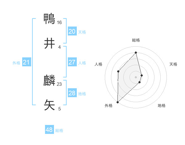 鴨井 麟矢さんの総格は48画の4点!
