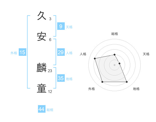 久安 麟童さんの総格は44画の2点!
