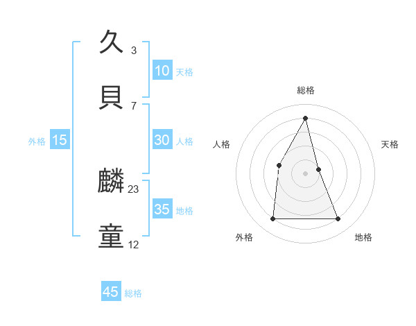 久貝 麟童さんの総格は45画の4点!