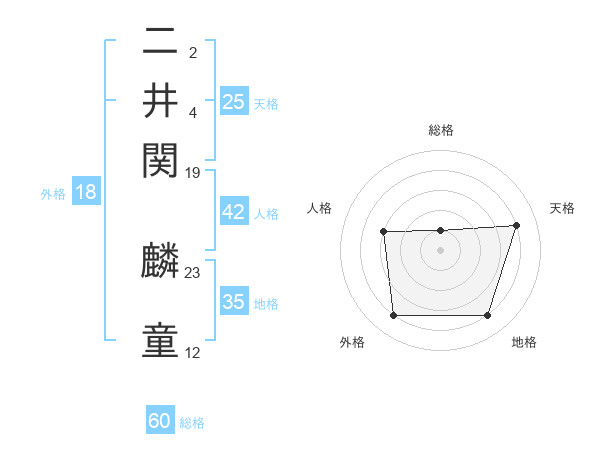 二井関 麟童さんを姓名の画数から五運を鑑定