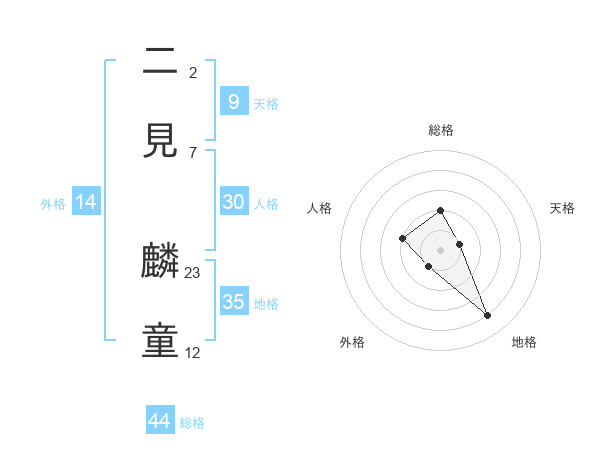 二見 麟童さんの総格は44画の2点!