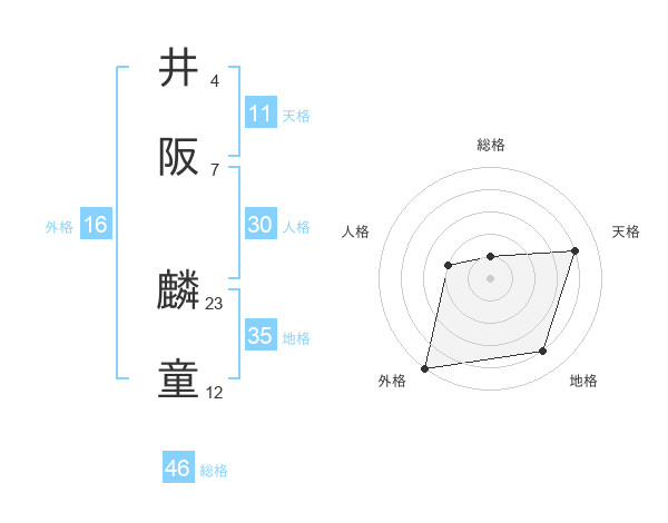 井阪 麟童さんの総格は46画の1点!