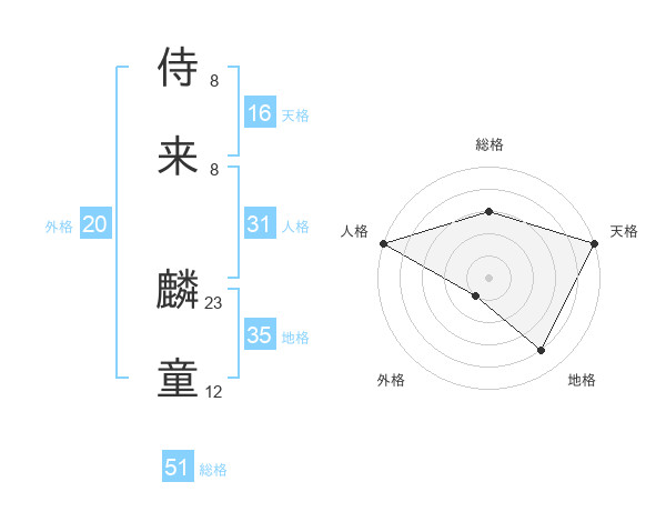 侍来 麟童さんの総格は51画の3点!
