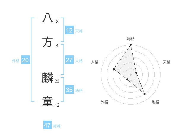 八方 麟童さんの総格は47画の5点!
