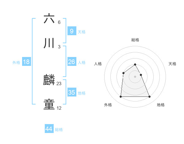 六川 麟童さんの総格は44画の2点!