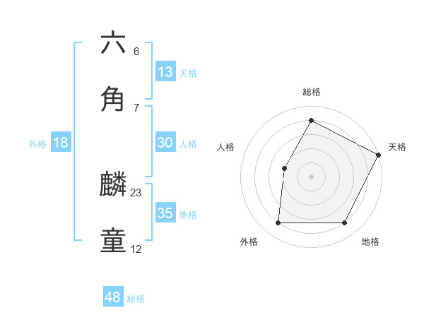 六角 麟童さんの総格は48画の4点!