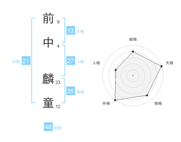 前中 麟童さんの天格は13画の5点!