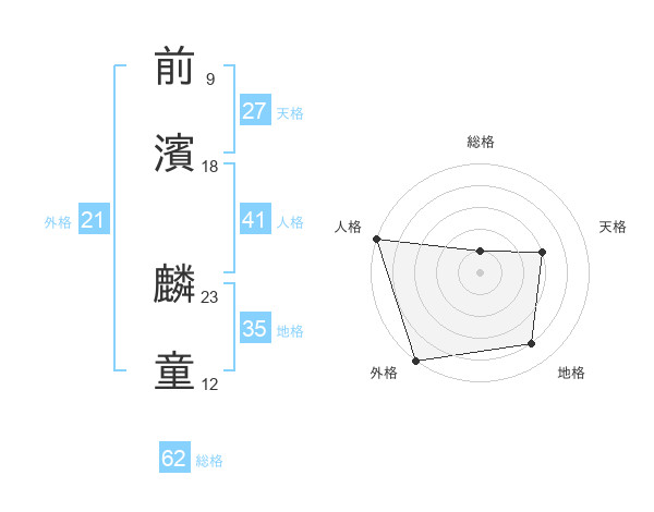 前濱 麟童さんの総格は62画の1点!