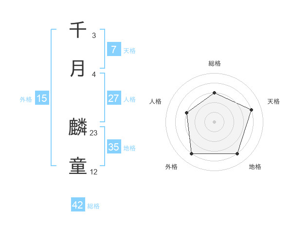 千月 麟童さんの総格は42画の3点!