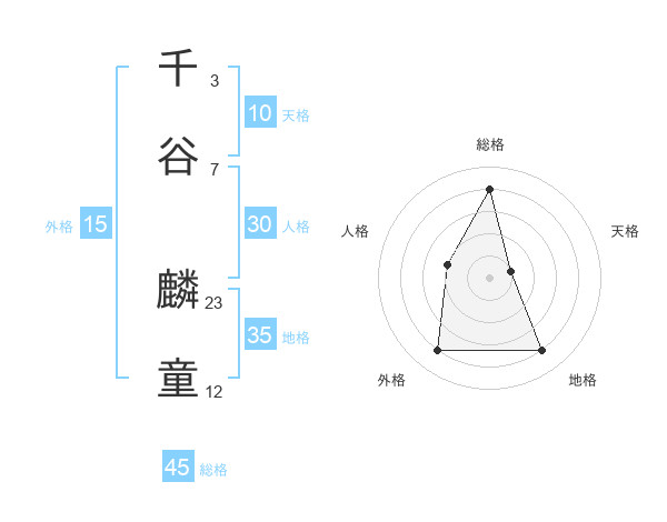 千谷 麟童さんを姓名の画数から五運を鑑定