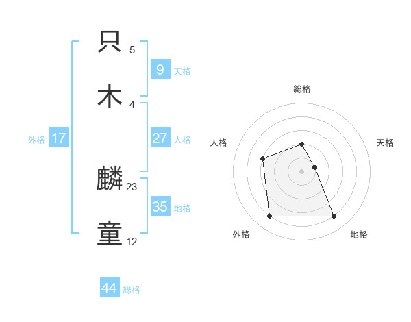 只木 麟童さんの総格は44画の2点!