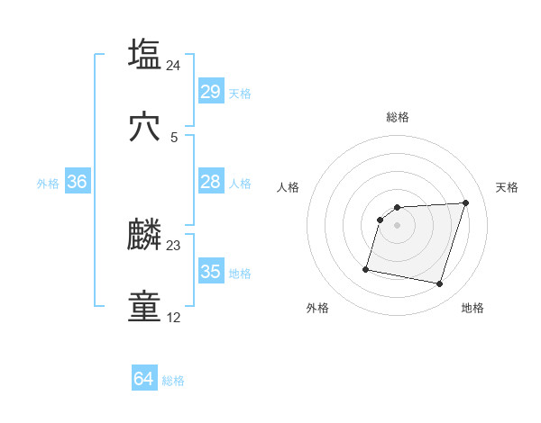 塩穴 麟童さんの天格は29画の4点!