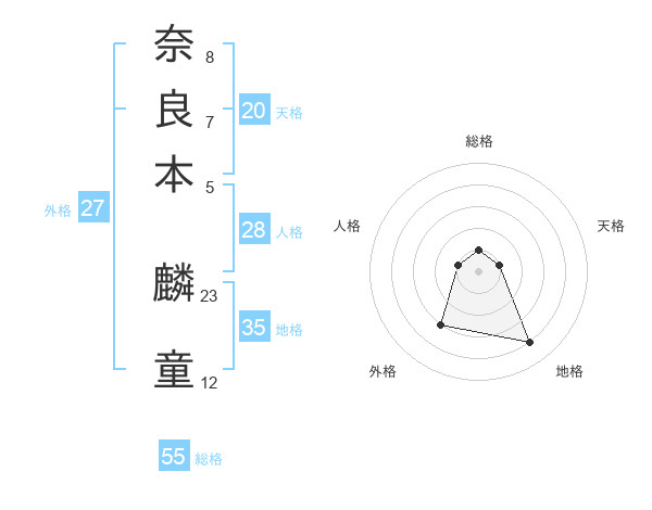 奈良本 麟童さんの総格は55画の1点!