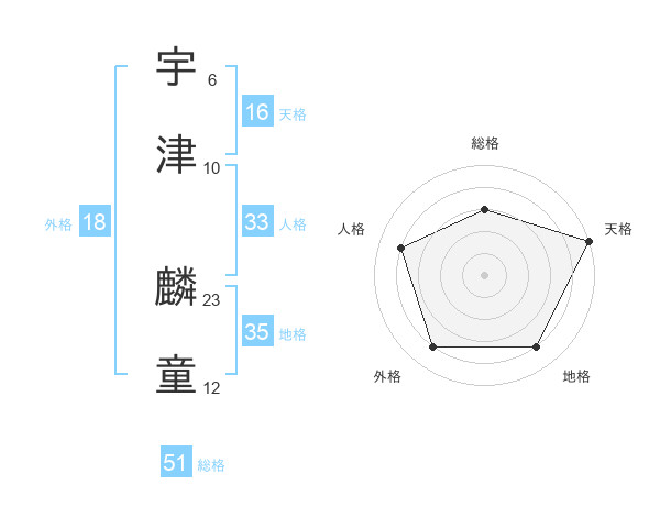 宇津 麟童さんを姓名の画数から五運を鑑定