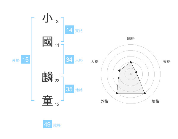 小國 麟童さんの総格は49画の2点!