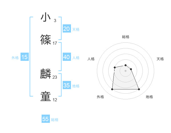 小篠 麟童さんの総格は55画の1点!