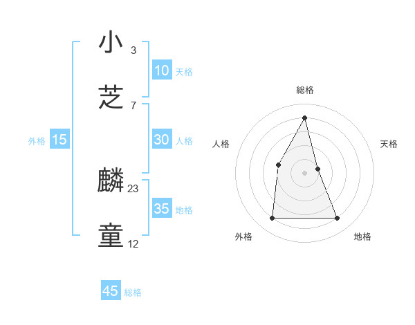 小芝 麟童さんの総格は45画の4点!