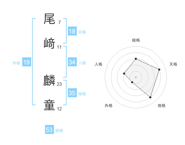 尾﨑 麟童さんの総格は53画の3点!