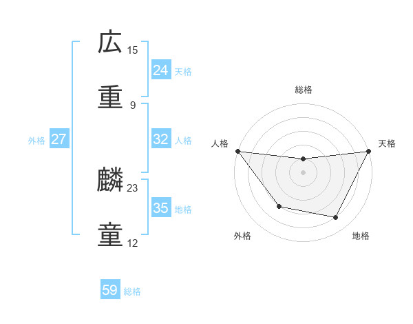 広重 麟童さんの総格は59画の1点!