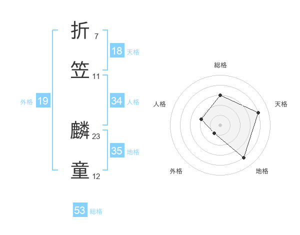 折笠 麟童さんの総格は53画の3点!