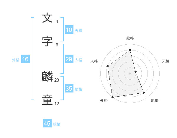 文字 麟童さんの総格は45画の4点!