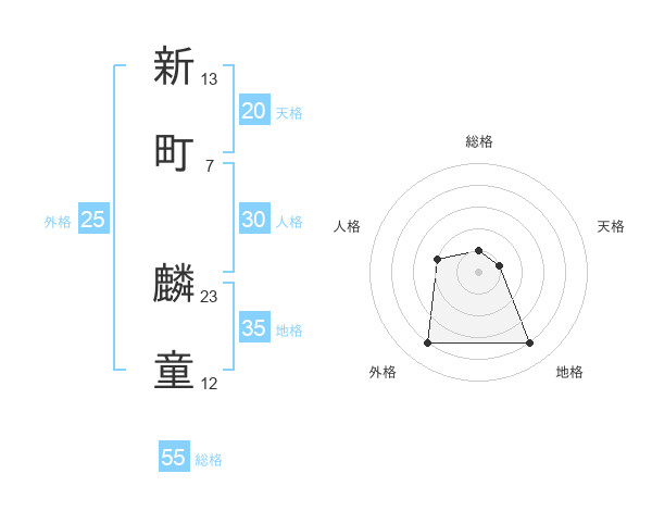 新町 麟童さんの総格は55画の1点!