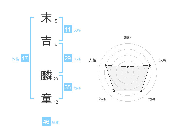 末吉 麟童さんの総格は46画の1点!