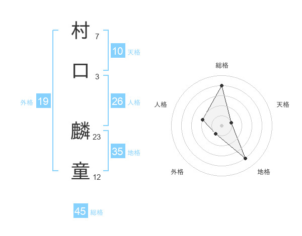 村口 麟童さんの総格は45画の4点!