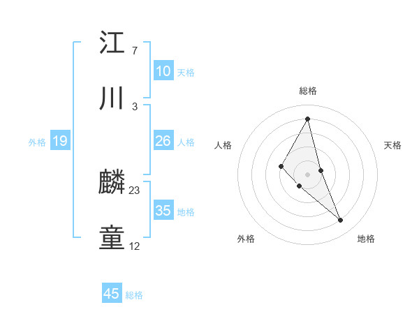 江川 麟童さんの総格は45画の4点!