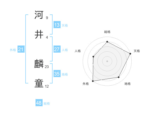 河井 麟童さんの天格は13画の5点!
