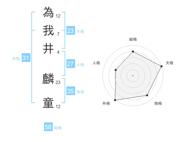 為我井 麟童さんを姓名の画数から五運を鑑定