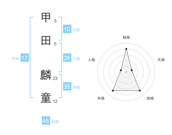 甲田 麟童さんを姓名の画数から五運を鑑定