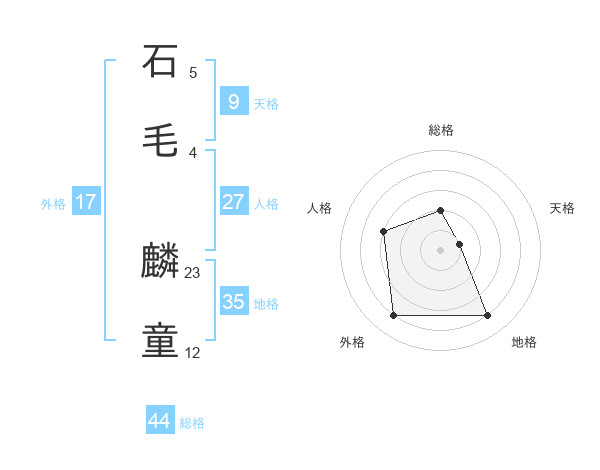 石毛 麟童さんの総格は44画の2点!