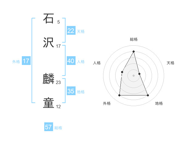 石沢 麟童さんを姓名の画数から五運を鑑定