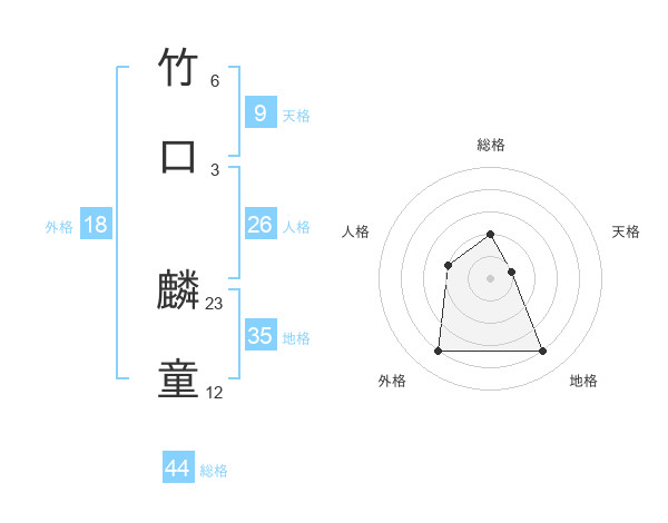 竹口 麟童さんの総格は44画の2点!