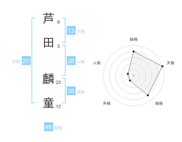 芦田 麟童さんを姓名の画数から五運を鑑定