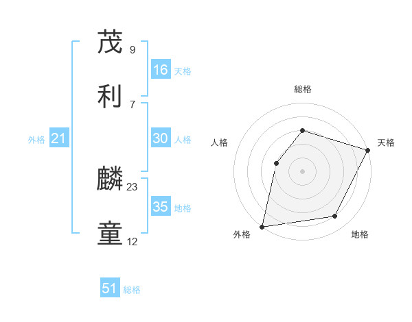 茂利 麟童さんの総格は51画の3点!