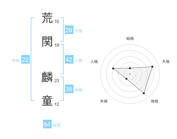 荒関 麟童さんを姓名の画数から五運を鑑定