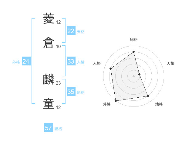 菱倉 麟童さんの総格は57画の4点!
