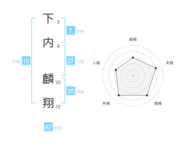下内 麟翔さんを姓名の画数から五運を鑑定