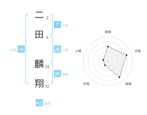 二田 麟翔さんを姓名の画数から五運を鑑定