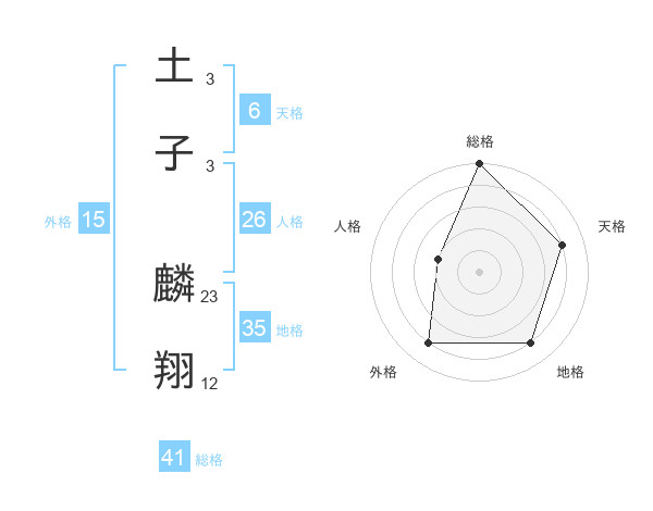 土子 麟翔さんを姓名の画数から五運を鑑定