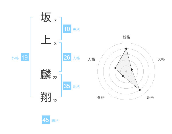 坂上 麟翔さんの総格は45画の4点!