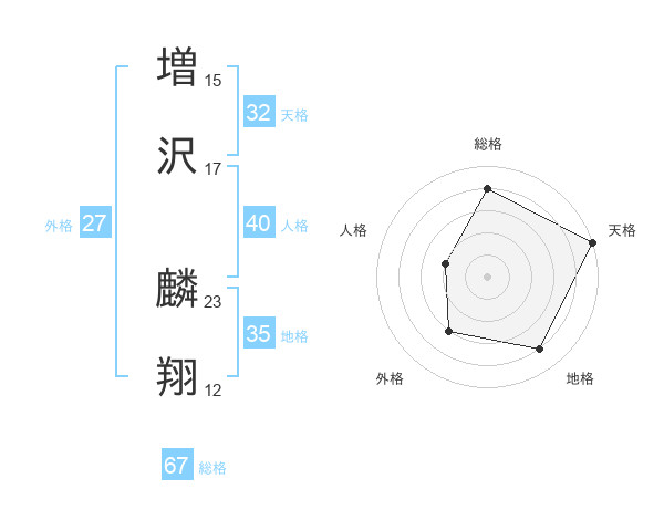 増沢 麟翔さんを姓名の画数から五運を鑑定